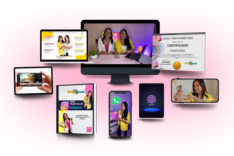 Con tu inscripción al Programa Intensivo de Instagram con IA, accedes a materiales digitales, herramientas prácticas y acompañamiento continuo para implementar lo aprendido y lograr resultados reales desde la primera semana.